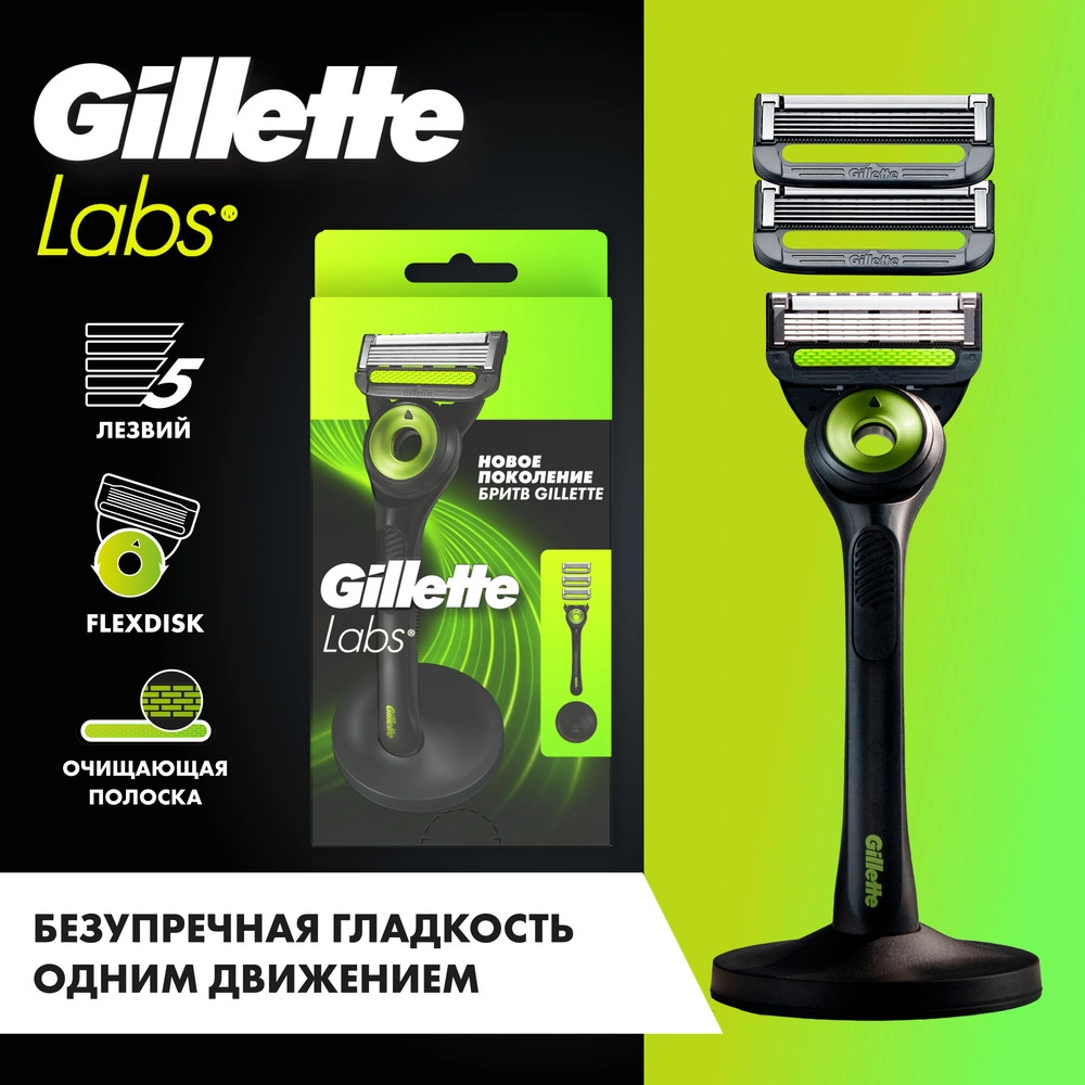 Мужская бритва Gillette Labs - это новое поколение бритв Gillette, с очищающей неоновой полоской и с технологией FlexDisk, которая повторяет контуры лица, обеспечивает безупречную гладкость одним движением.